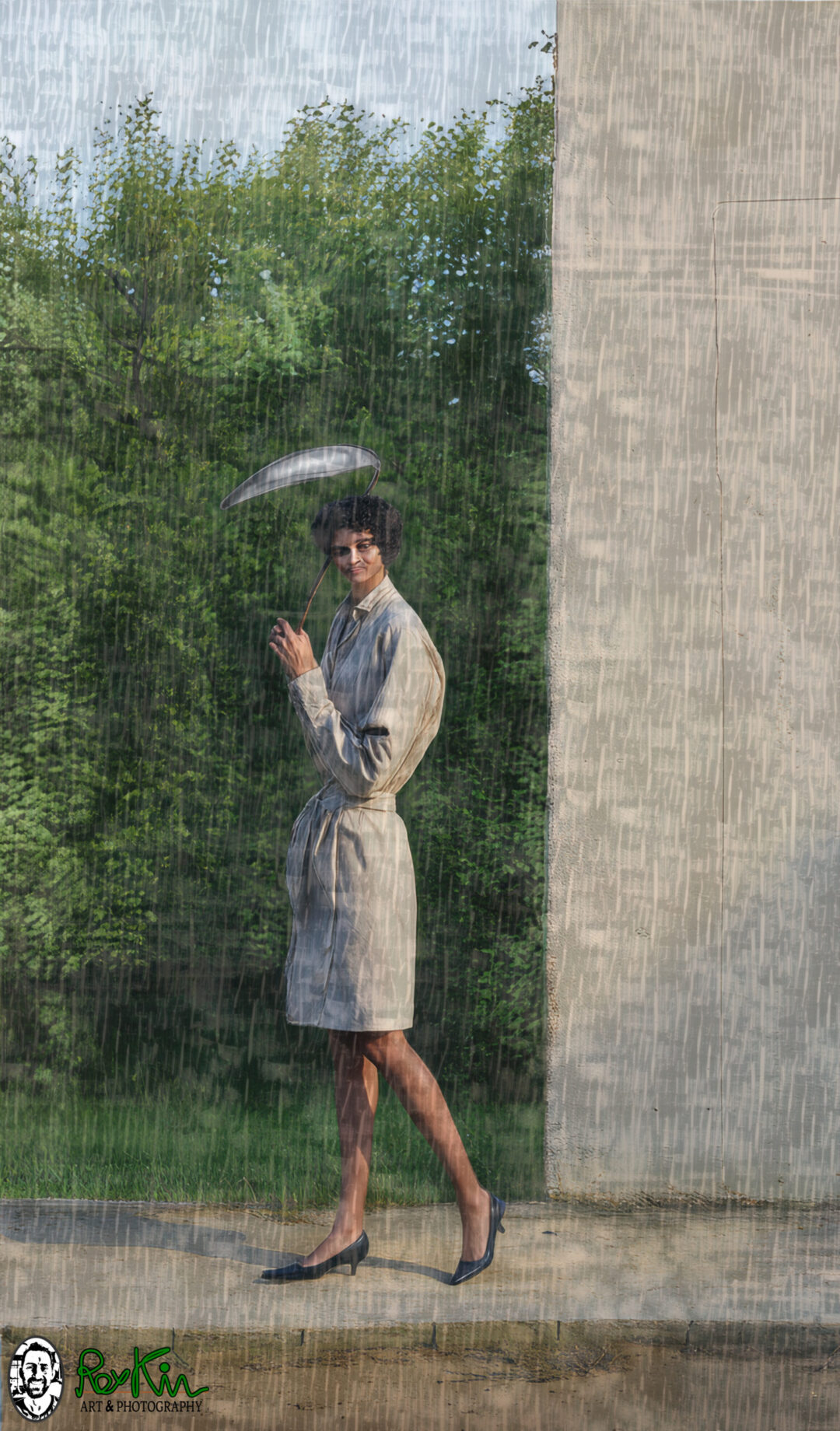 Details: 4 AI’s with many steps and editing. Date: Nov 7, 2025. Source: “Woman Walking in The Street Holding Parasol”