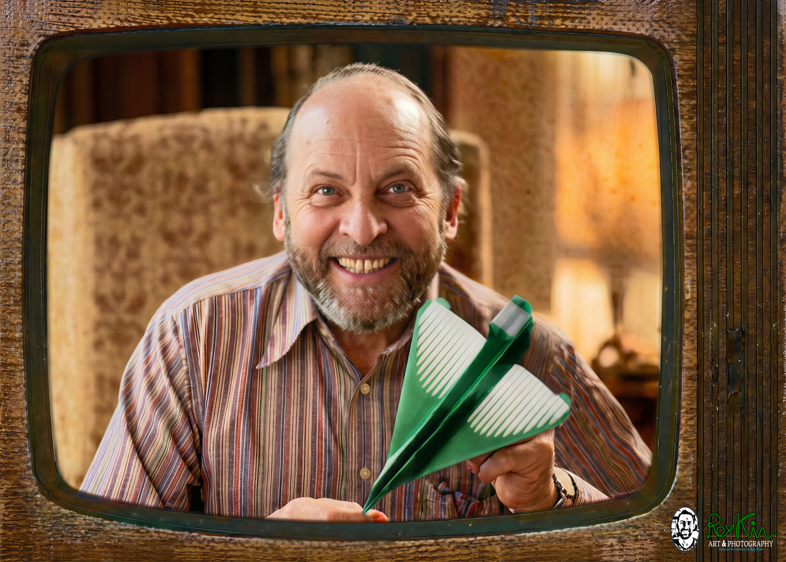 I chose this for the main (‘cover’) image and it was retrieved from the front side cover of the Deutsch edition “Felix Rosenthal Papier-Flugzeuge die wirklich fliegen!” (Printed: ZΓΌrich, Switzerland). In here it a composition of Felix Rosenthal placed inside a TV (like in a middle of a show broadcast) and he holds the “Sprinter” paper airplane model.
