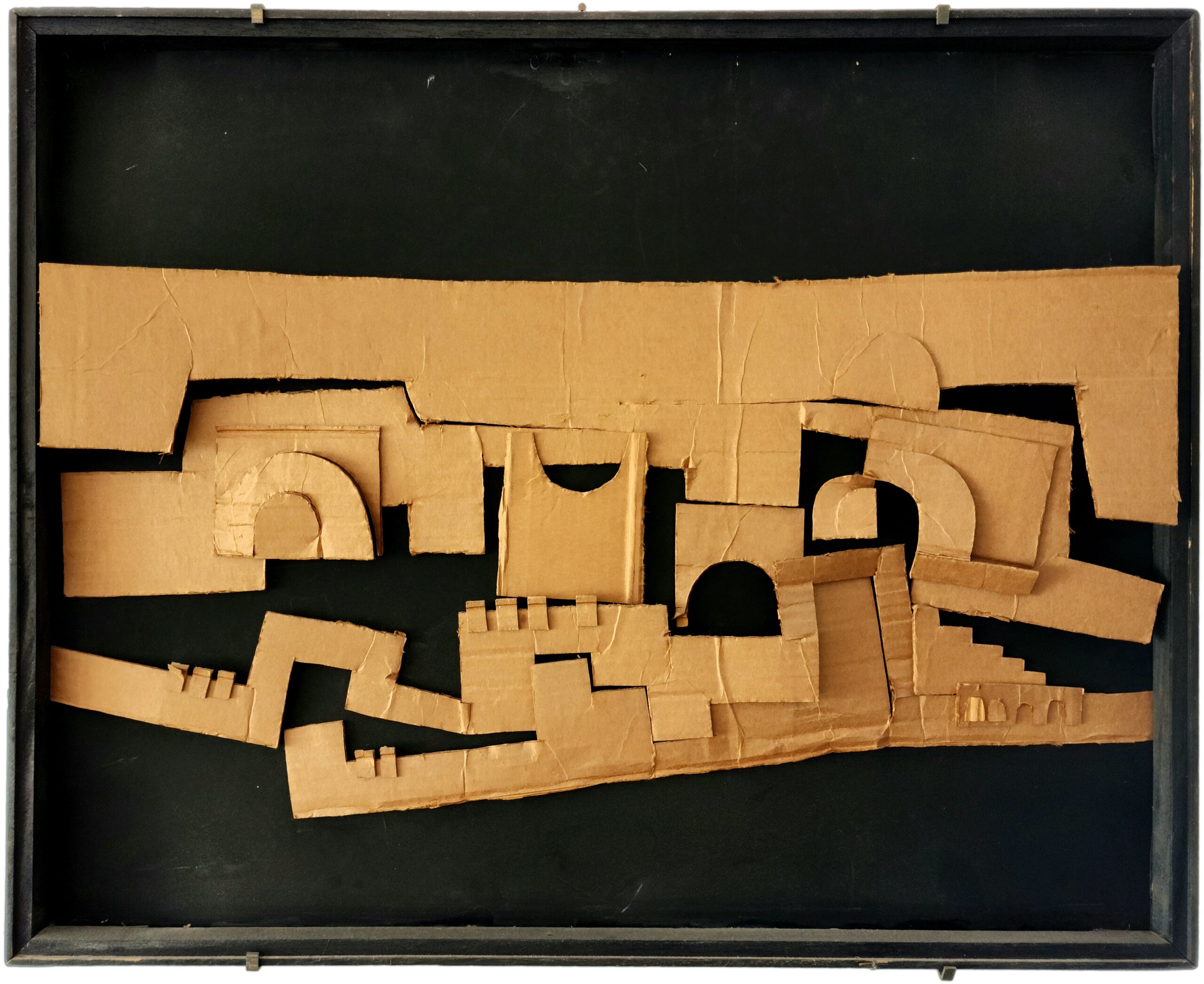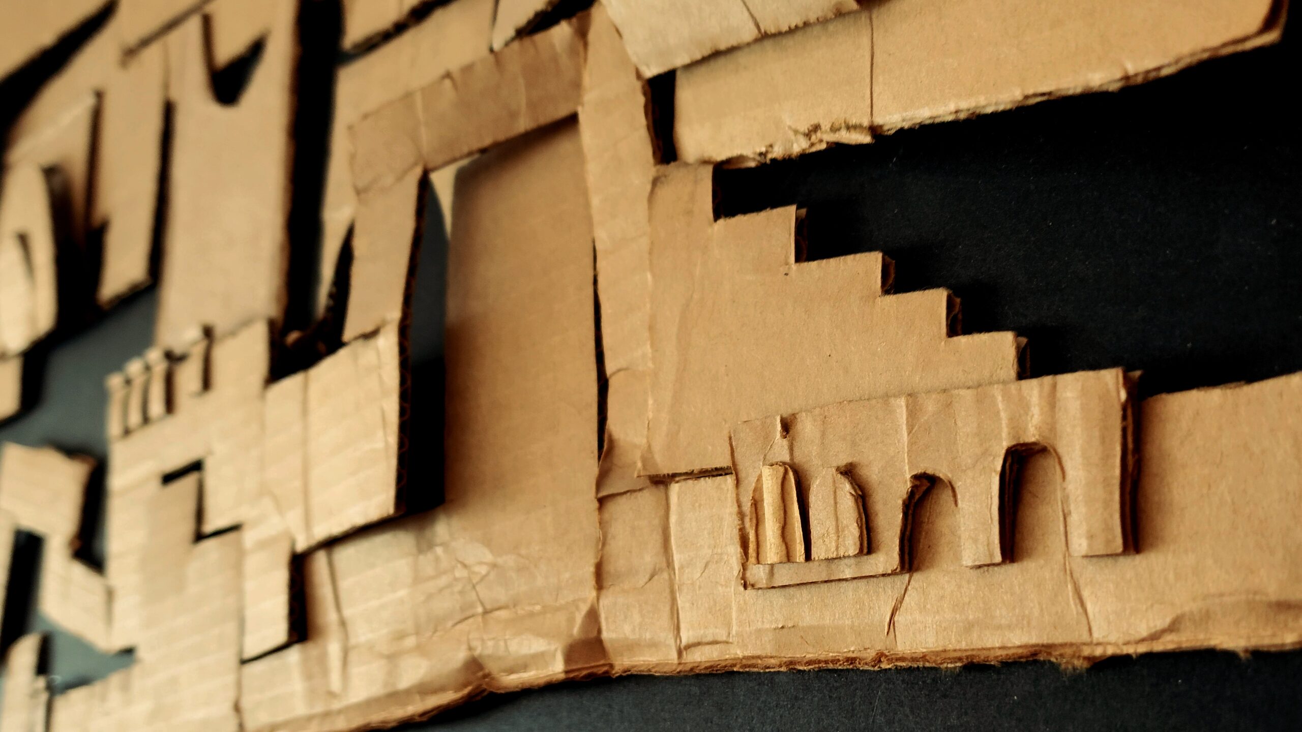 “This is cutting with a Japanese knife and pulling up, down and to the sides of natural cardboard (unpainted) and a little gluing of small cardboard pieces of the city of Jerusalem – this is much more difficult because I have to know the whole picture in advance (see it in my head) and how I want it to look in the end and then cut in the relevant place (you can’t make a mistake and cut in the wrong place).”