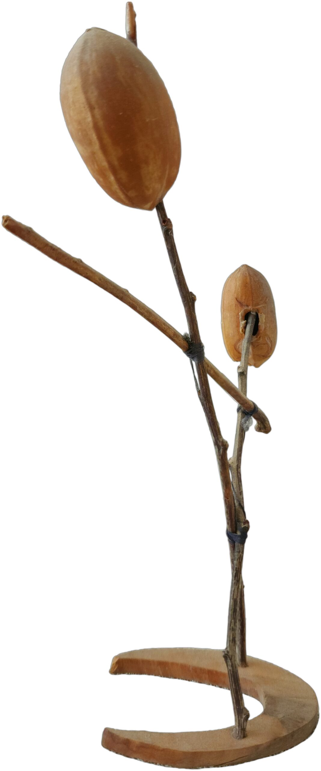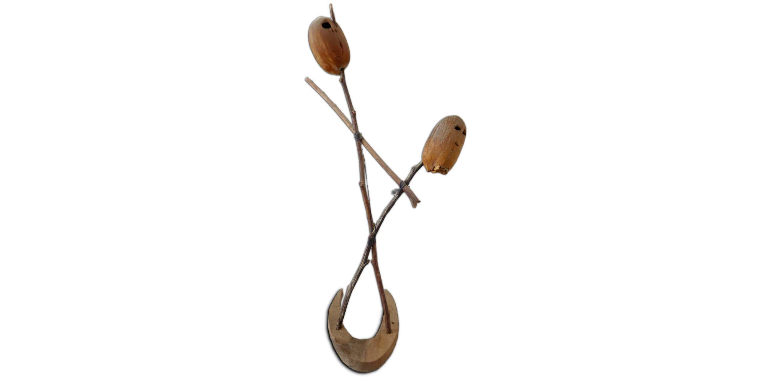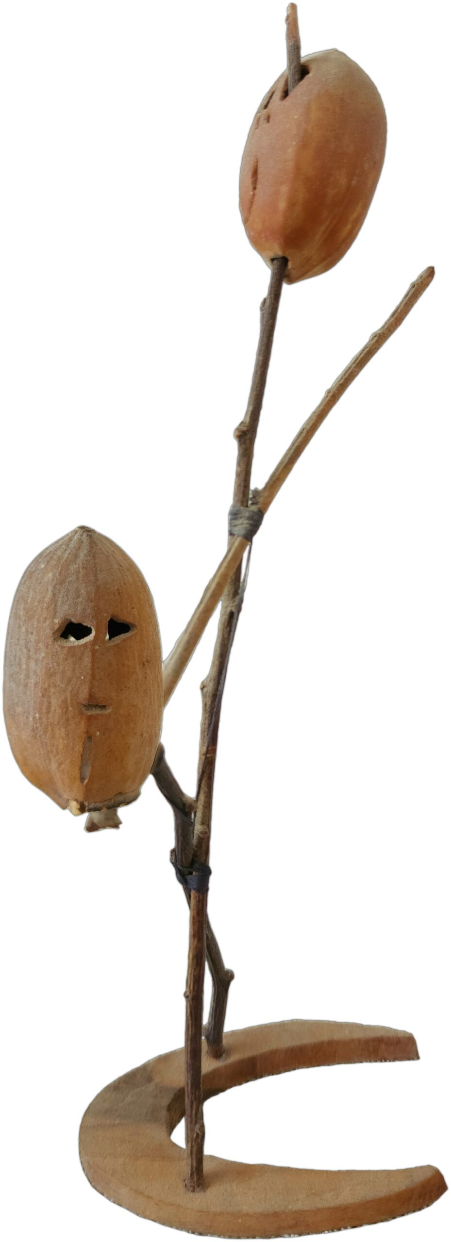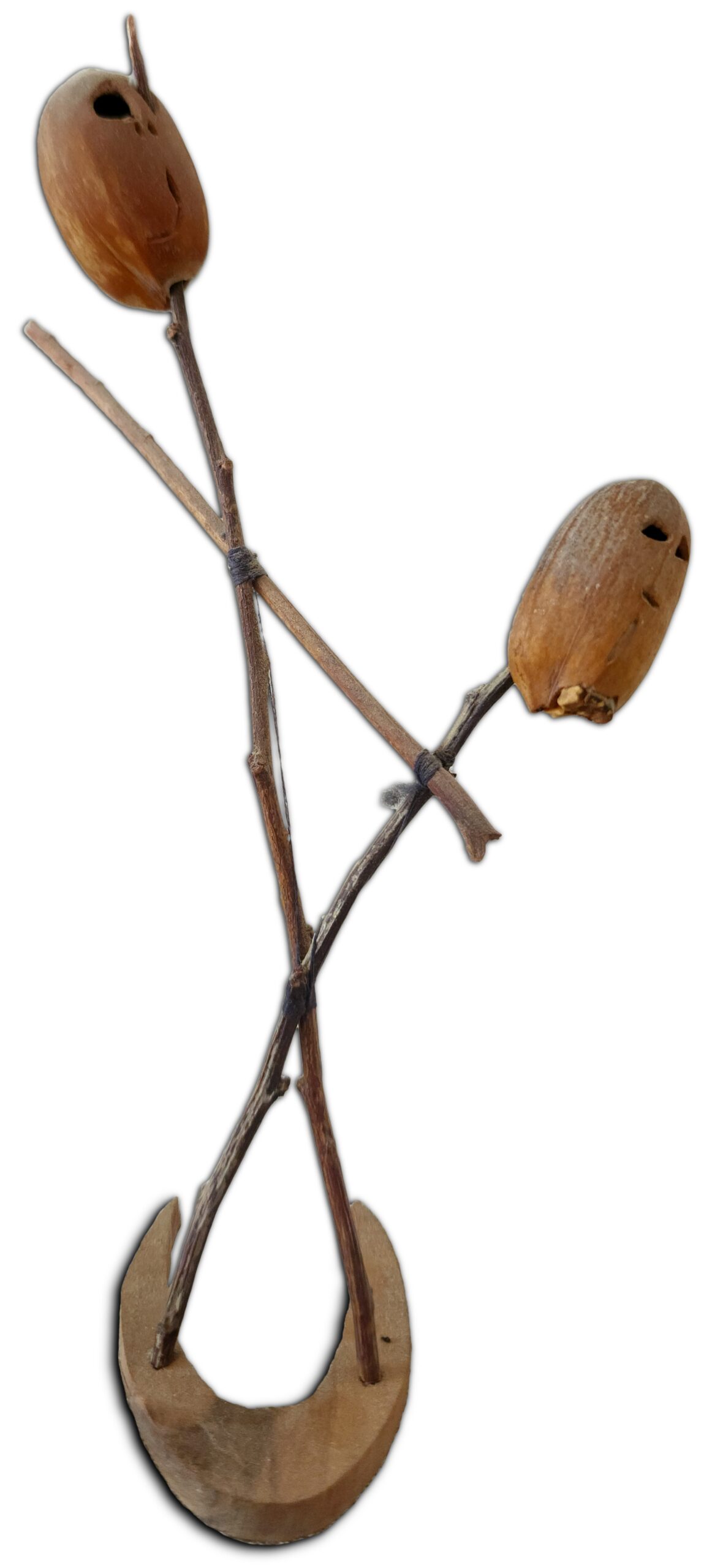 The two figures can be seen connected together at the waist (twigs meet in an X) and especially the horizontal twig that connects the two, which actually comes to represent them holding hands as a symbol of good relations. It can also be seen that the twigs at the point of connections (in the X’s) are not glued but tied, which simulates the close connection between the figures in terms of the historical story and in terms of the idea of maintaining peace and close relations. However, in reality the situation was completely different.