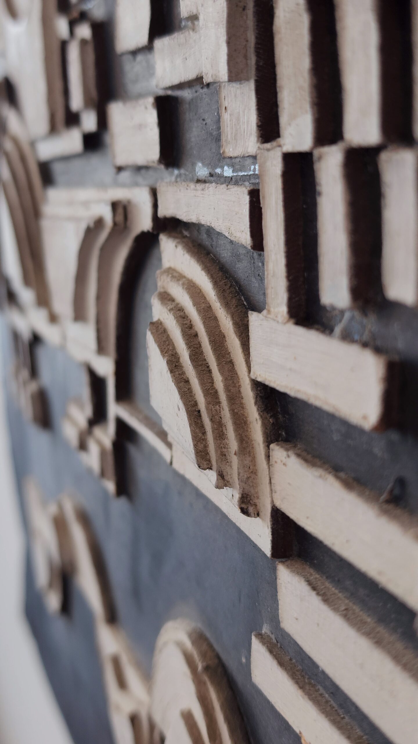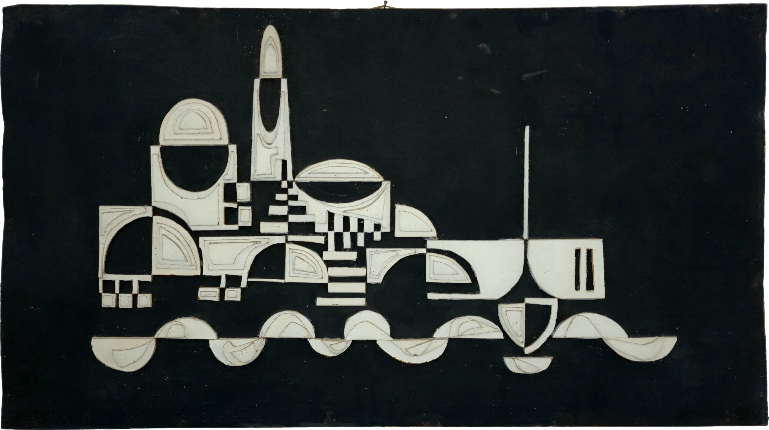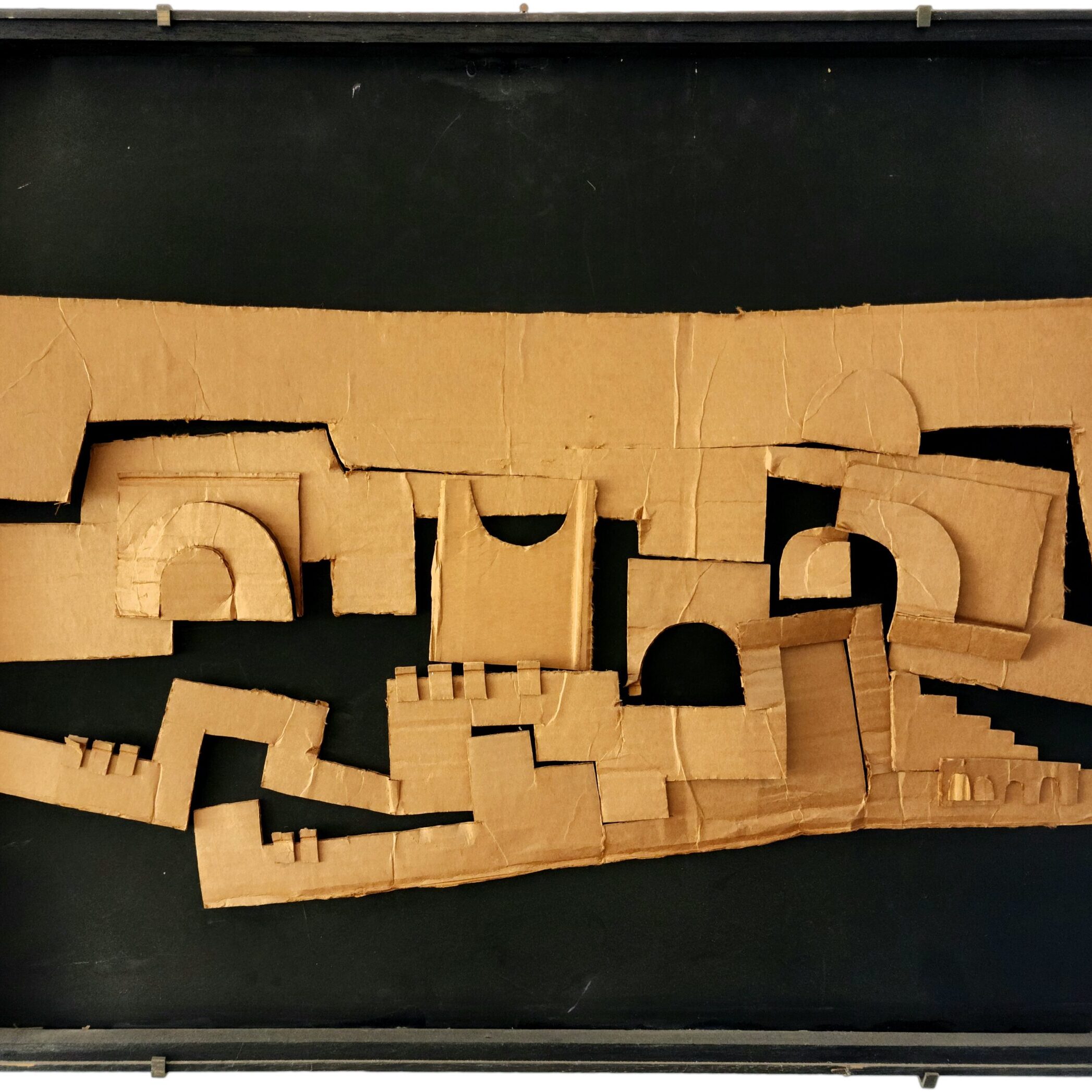 On the relief – “I remember that I probably did it more as an urban exercise – it was to get accepted to Bezalel. My father said I wouldn’t get accepted (my father tried to dissuade me: “You can’t make a living from this,” he knew that as he himself was an actor). I still went to the Bezalel admissions test with a “portfolio” of works I had done. One of them is the urban exercise of the city of Jaffa – cardboard on cardboard (painted in white) on a black background.