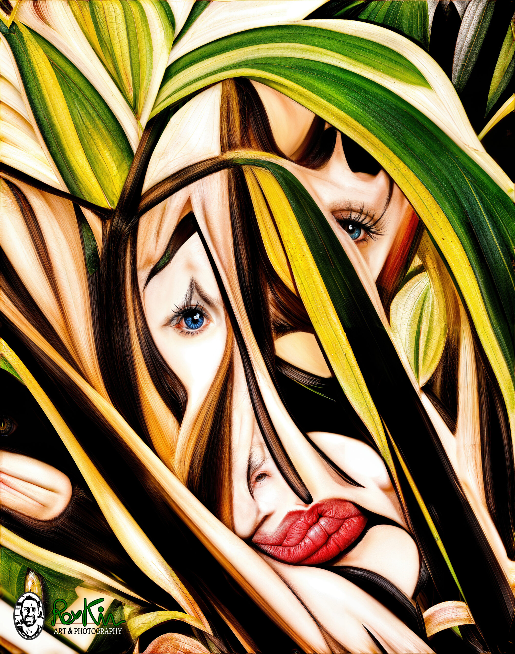 The meaning of “Woman Metallica Magnificatus” is an lively, colorful, and elegant woman. The “Metallica” comes from the palm tree named “Metallica” and “Magnificatus” it my Latin invented word for “Close-Up”. In other words, this piece could be described as “Elegant Woman with a style of Metallica Palm Tree in a Closed-Up Photoshoot”.